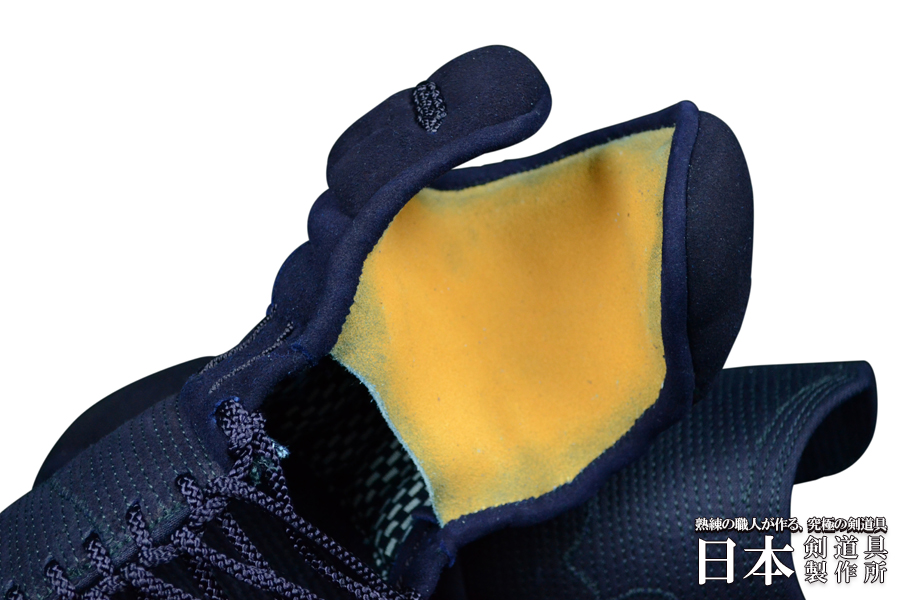 甲手頭には紺鹿革を使用しており、厚さ等品質の吟味を行っているこだわりの逸品です。