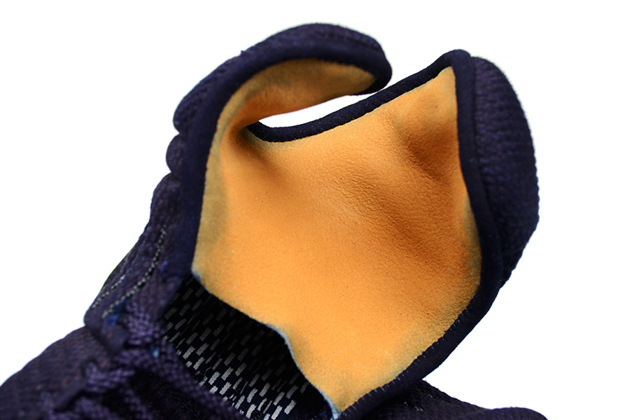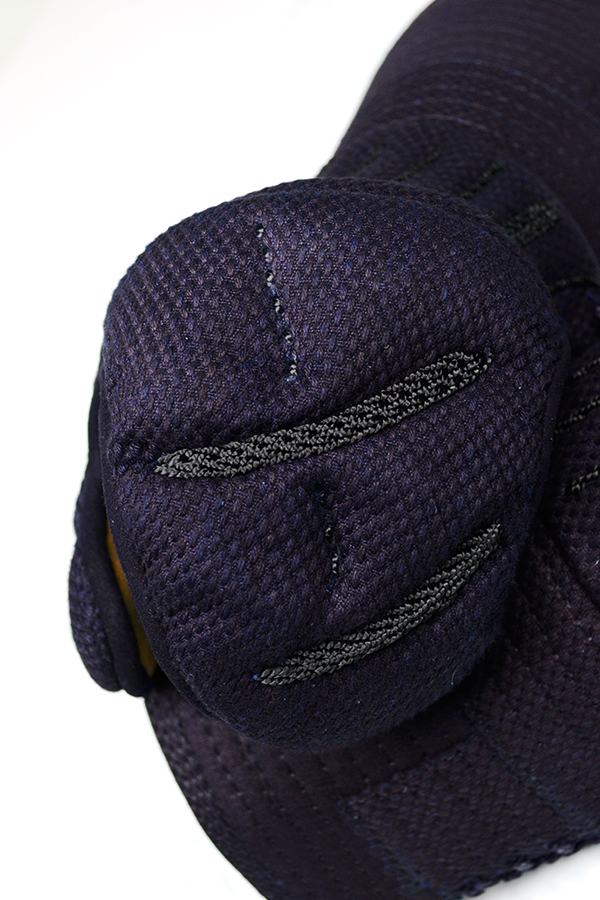 籠手は、頭総織刺仕立となっており、黒の二段飾りや江戸打紐が古式風の作りを引き立てます。また手の内・ヘリ皮には耐久性の高い鹿革を使用し、鹿毛を使用し仕立てました。